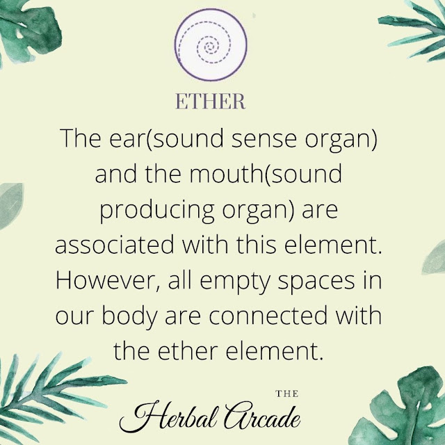 Ether is a vast area but it doesn’t have a boundary, it is often referred to as “Emptiness” or sky or “space”. Ether is the first one of the great elements because it is the most subtle element of all. The factor of Ether element is sound because The origin of ether is a word(शब्द). let’s understand the sense of “sound” in the human body, the ear is the organ to sense the sound or ‘element ether’, and the mouth is its organ to produce the sound. simply, diseases related to hearing and voice are diseases that relate to deterioration or unbalance of the ether element.